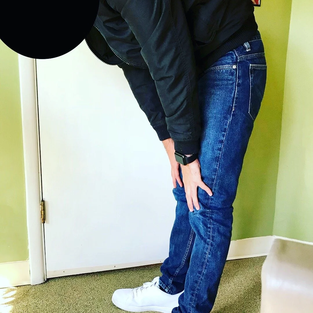 I asked Adam to reach down and touch his toes, and this is as far as he could reach. We repeated the test several times to “warm him up,” and I took this picture of how far he could reach.