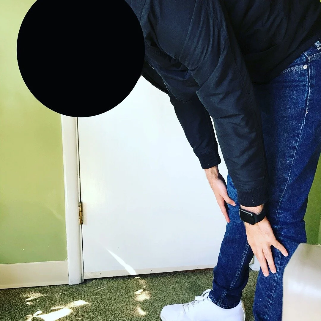 Adam, before his adjustment, can barely reach down to his knees. He has extreme tightness in his hamstrings and in his lower back.